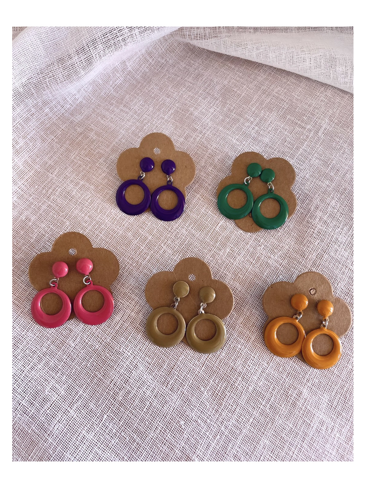 Pendientes de flamenca redondos lisos Disponibles en siete tonos: rojo, burdeos, morado, frambuesa, azul eléctrico, gris y verde Pendientes de tamaño grande para niña